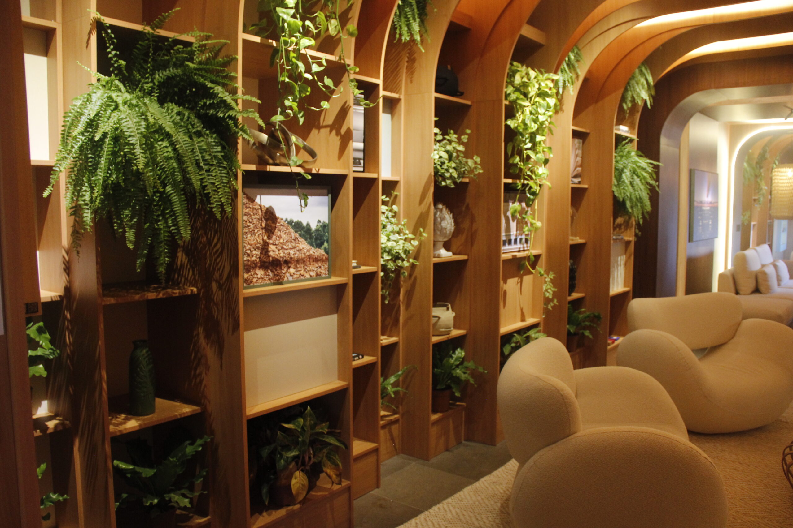 No espaço Cidade Floresta, criado pela KV Arquitetura, tecnologia e natureza dialogaram em perfeita harmonia. A automação da Hometree permitiu que o ambiente transmitisse uma sensação de refúgio contemporâneo, onde iluminação, clima e sonorização se ajustavam para criar uma atmosfera acolhedora e sofisticada.