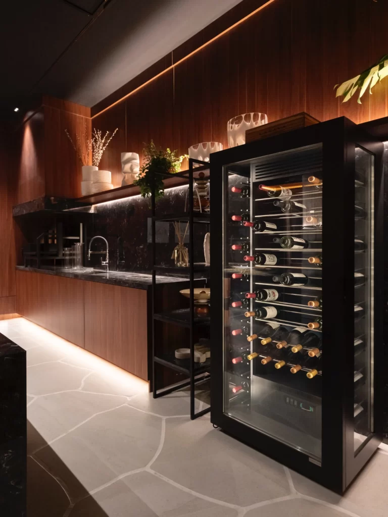 Desenvolvidas pela Lacava, referência no segmento, oferecem soluções personalizadas para projetos de alto padrão. O modelo VITRIA se destaca como a única adega compacta do mercado com visão lateral e diferenciais patenteados, uma peça de design que vai além do armazenamento, transformando o vinho em uma verdadeira experiência sensorial.